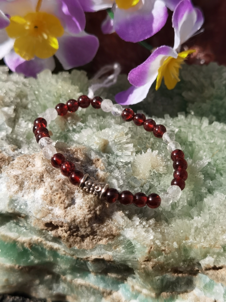 Bracelet grenat 4mm et cristal de roche facetté 4mm