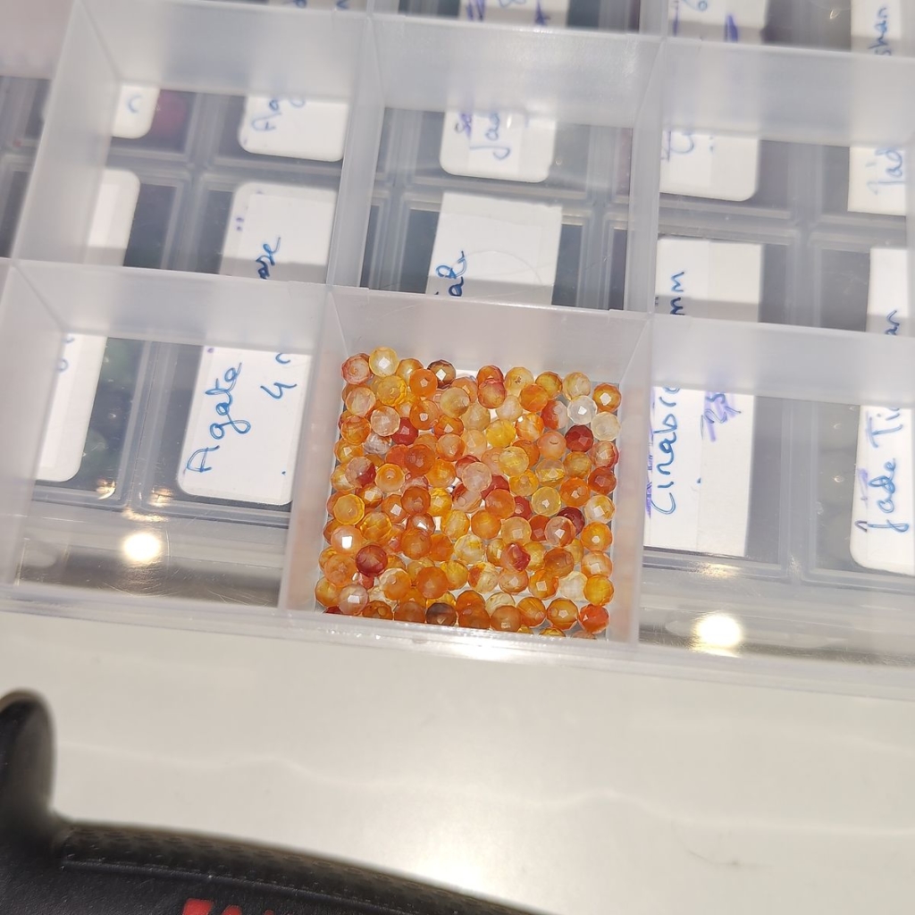 Perles facettés cornaline 3mm, fil 40cm
